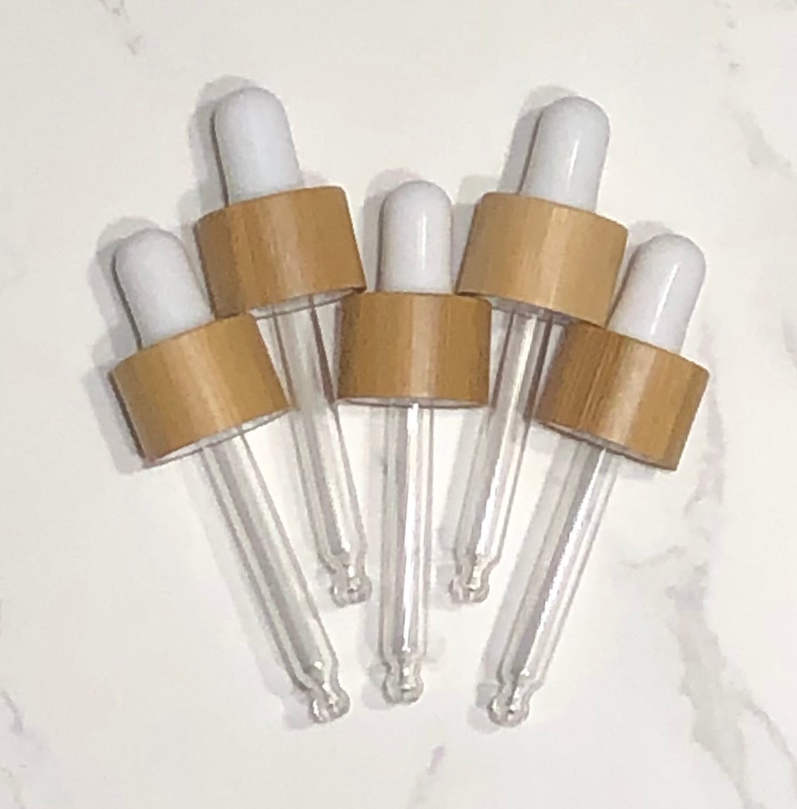 15mL (18-410) Bamboo and White Dropper Tops ~ Pack of 5